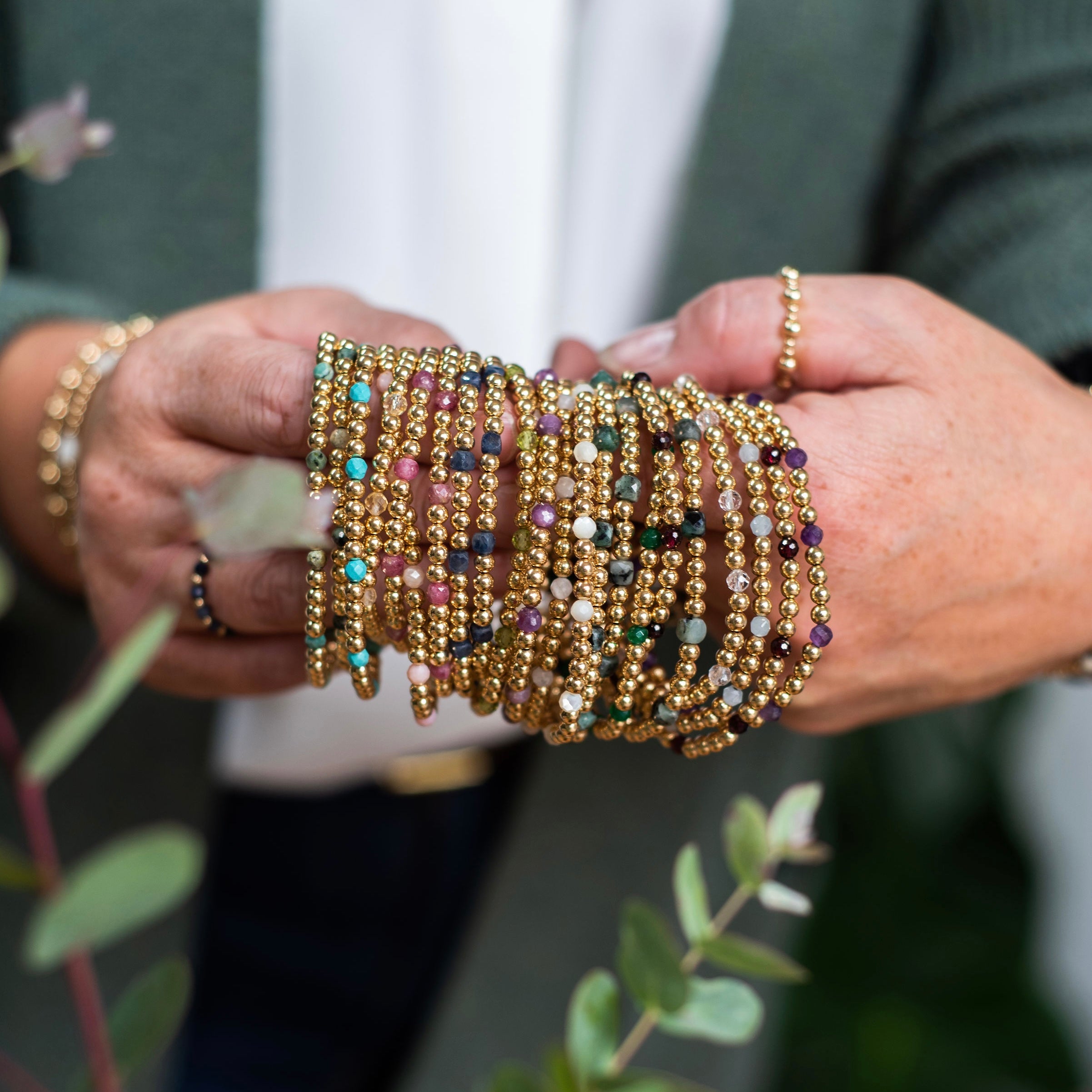 Add a pop of colour to your stack with our stunning meaningful birthstone beaded bracelet.