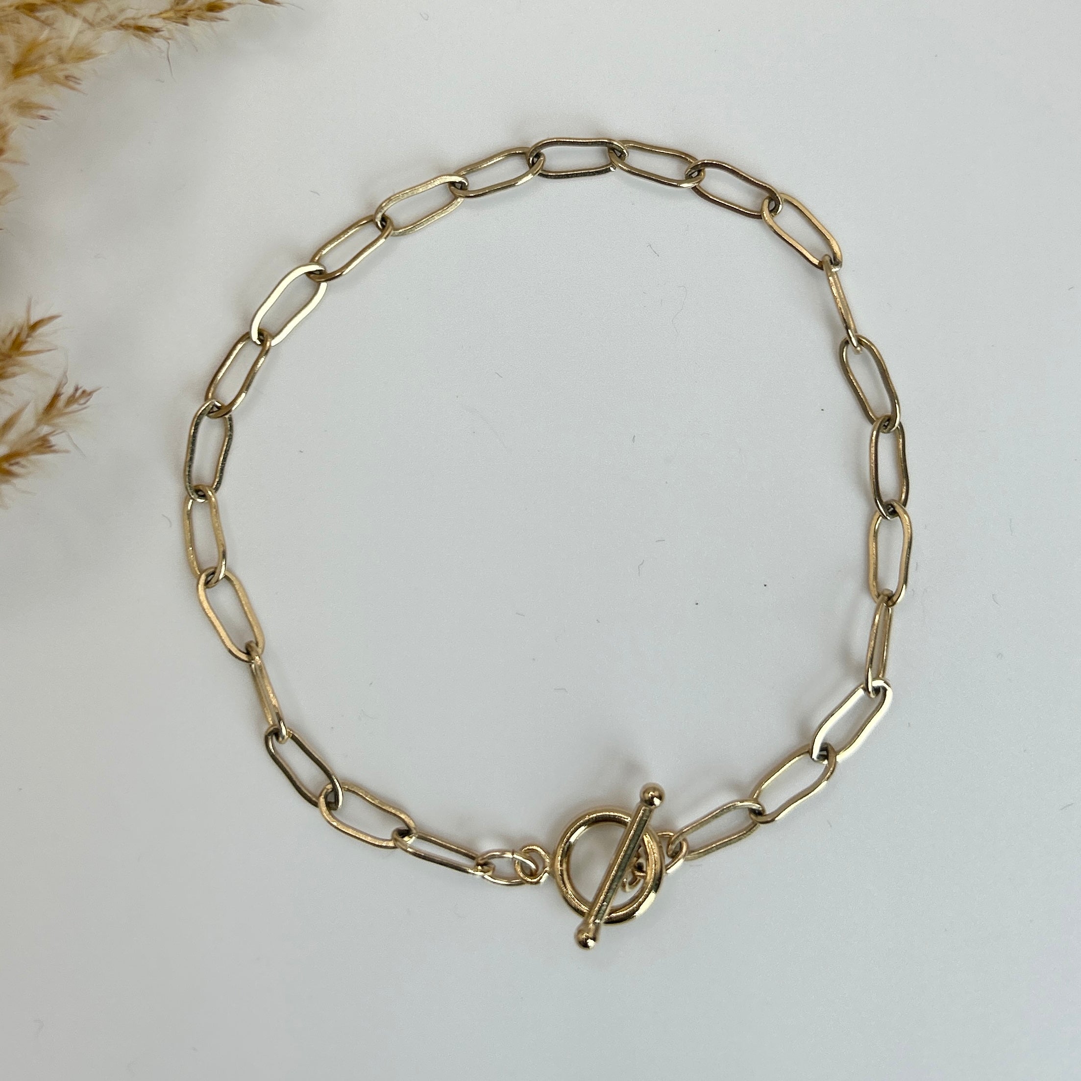 18K GOLD FILLED PAPERCLIP TOGGLE BRACELET