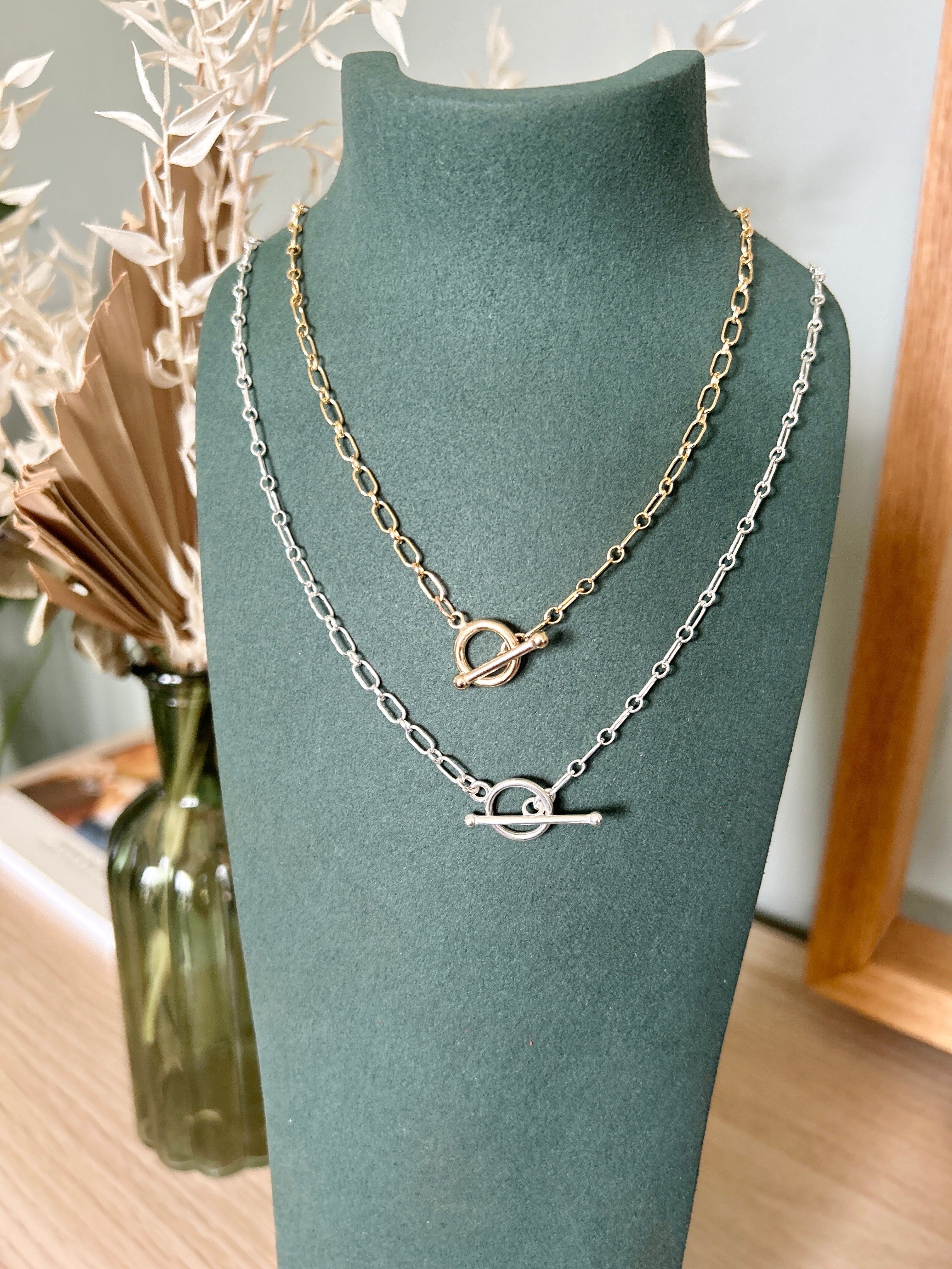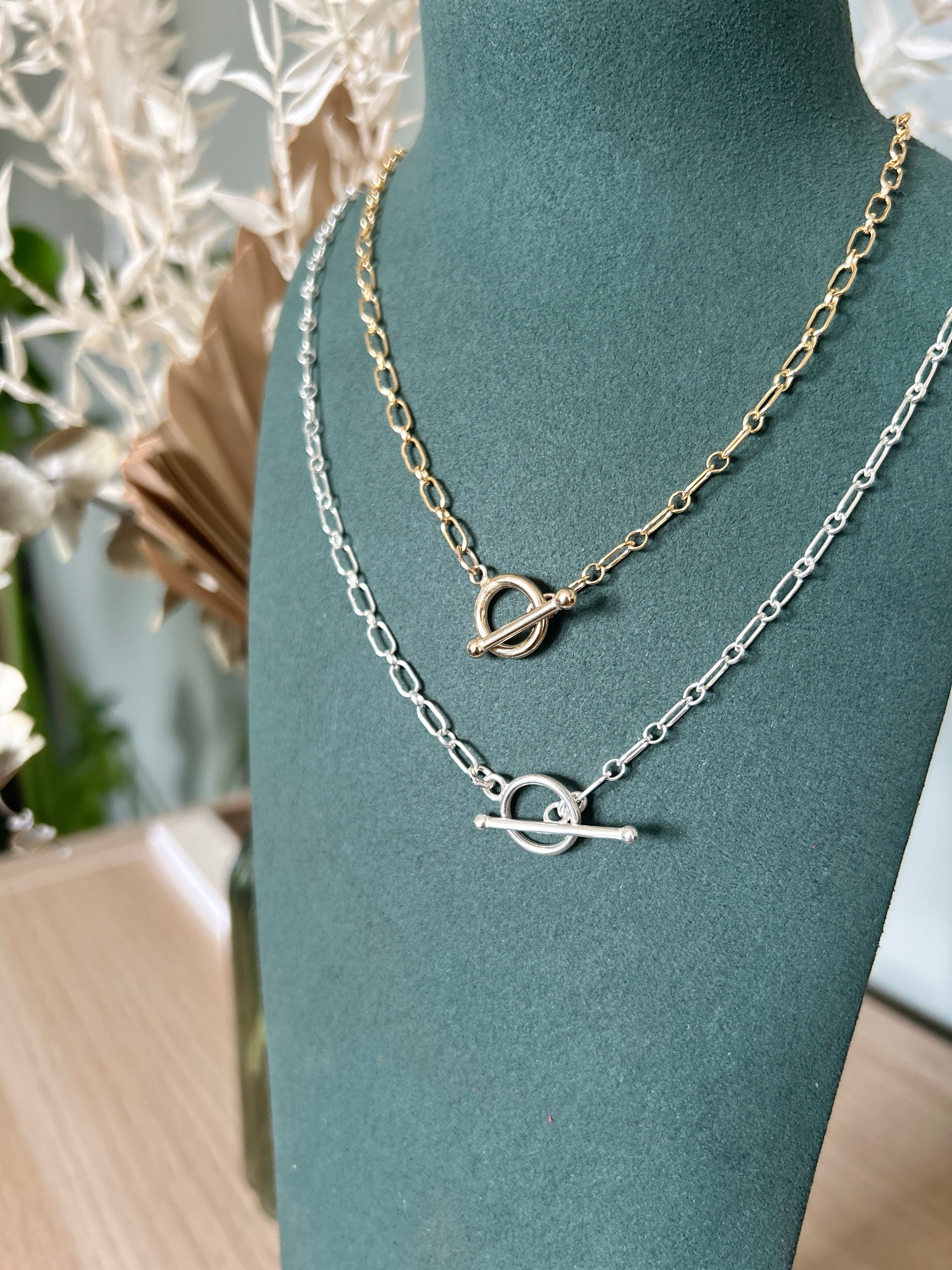 Elevate your style with our 18K gold filled Becky toggle chain necklace! This gorgeous design adds a modern twist to a classic piece. Perfect for layering or wear it on its own.