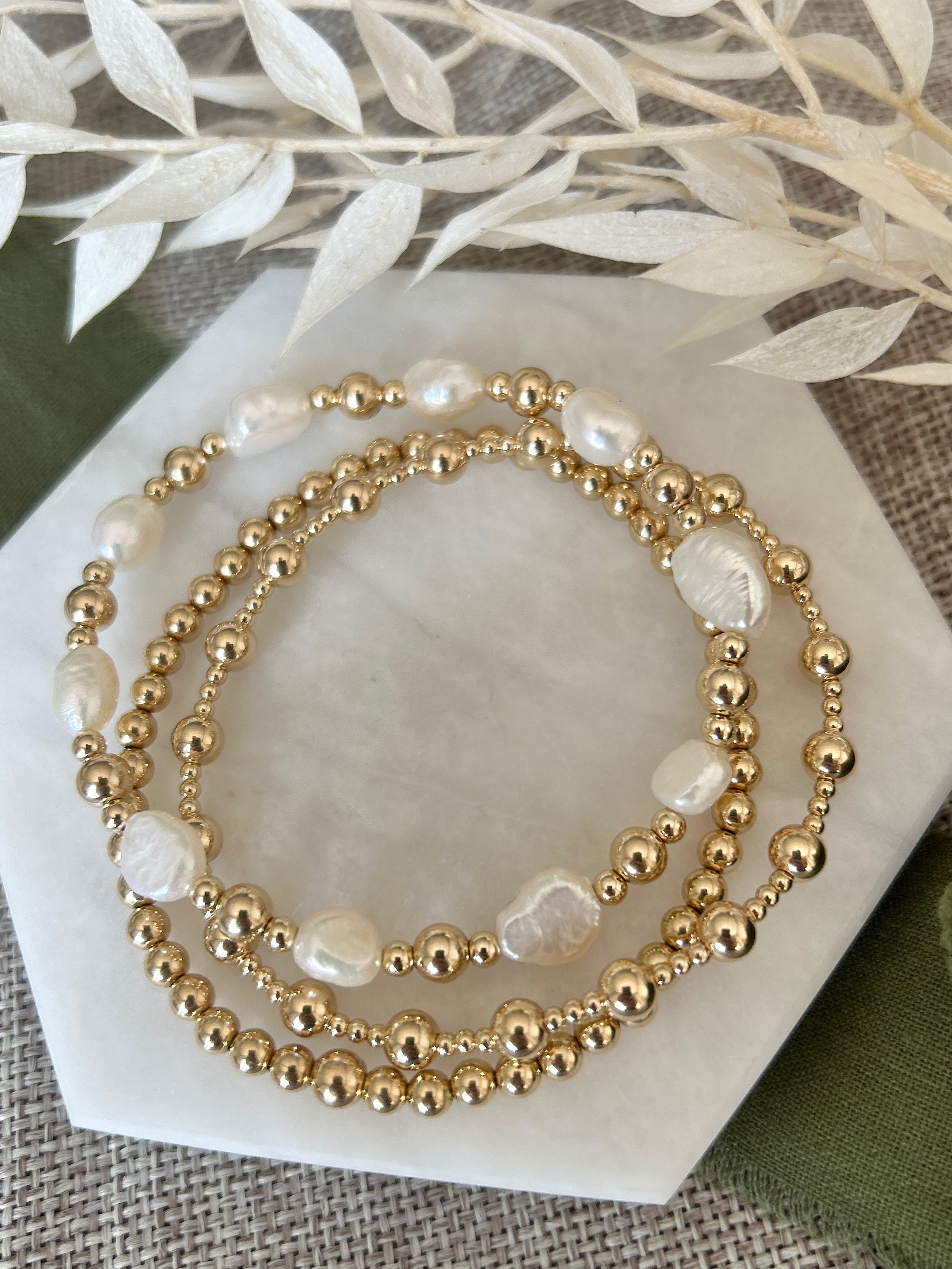 Our stunning Grace bracelet will add a touch of charm to all your favourite looks. Crafted with natural fresh water pearls and gold filled or sterling silver, this stunning bracelet looks perfect worn on its own or will complement any Rebecca May stack.
