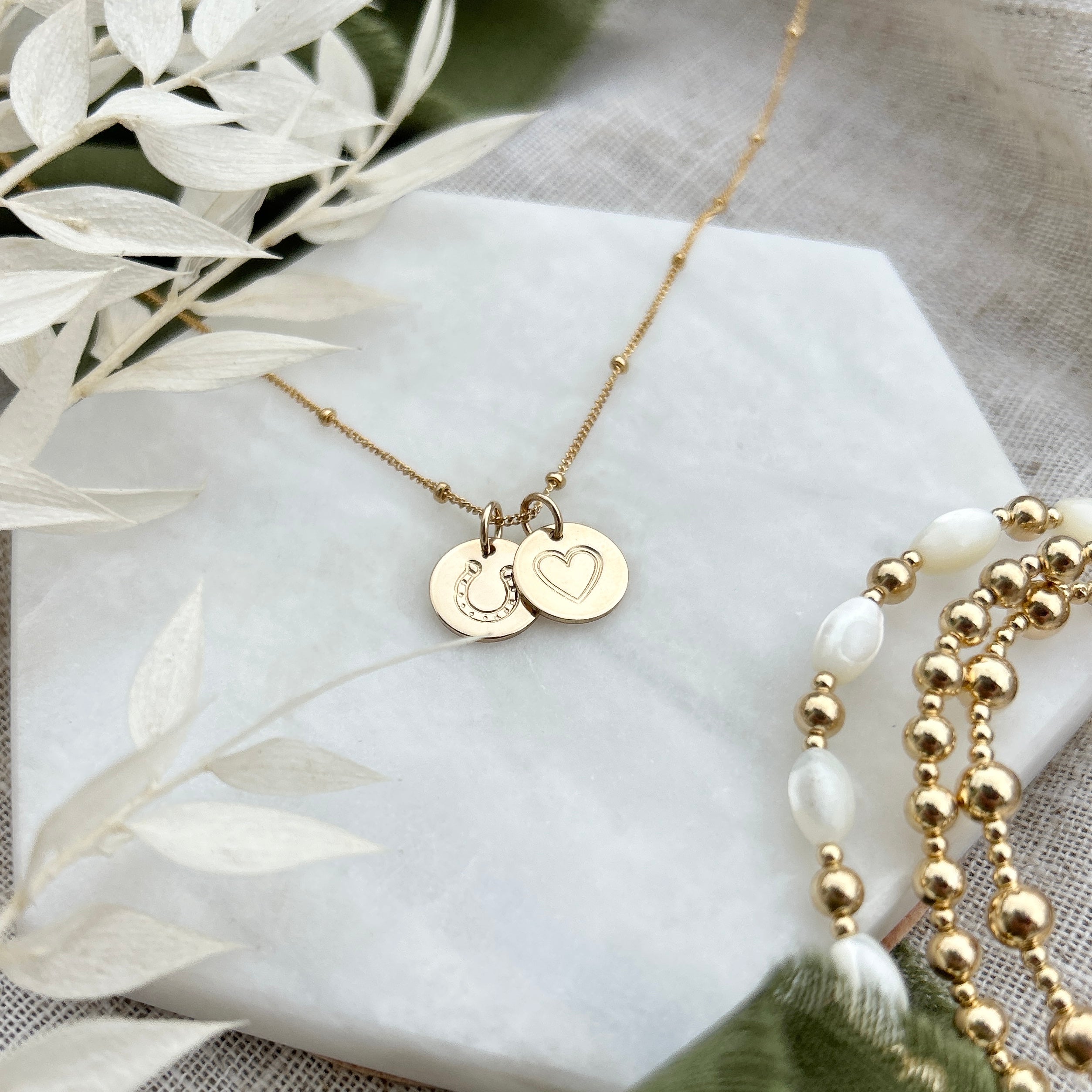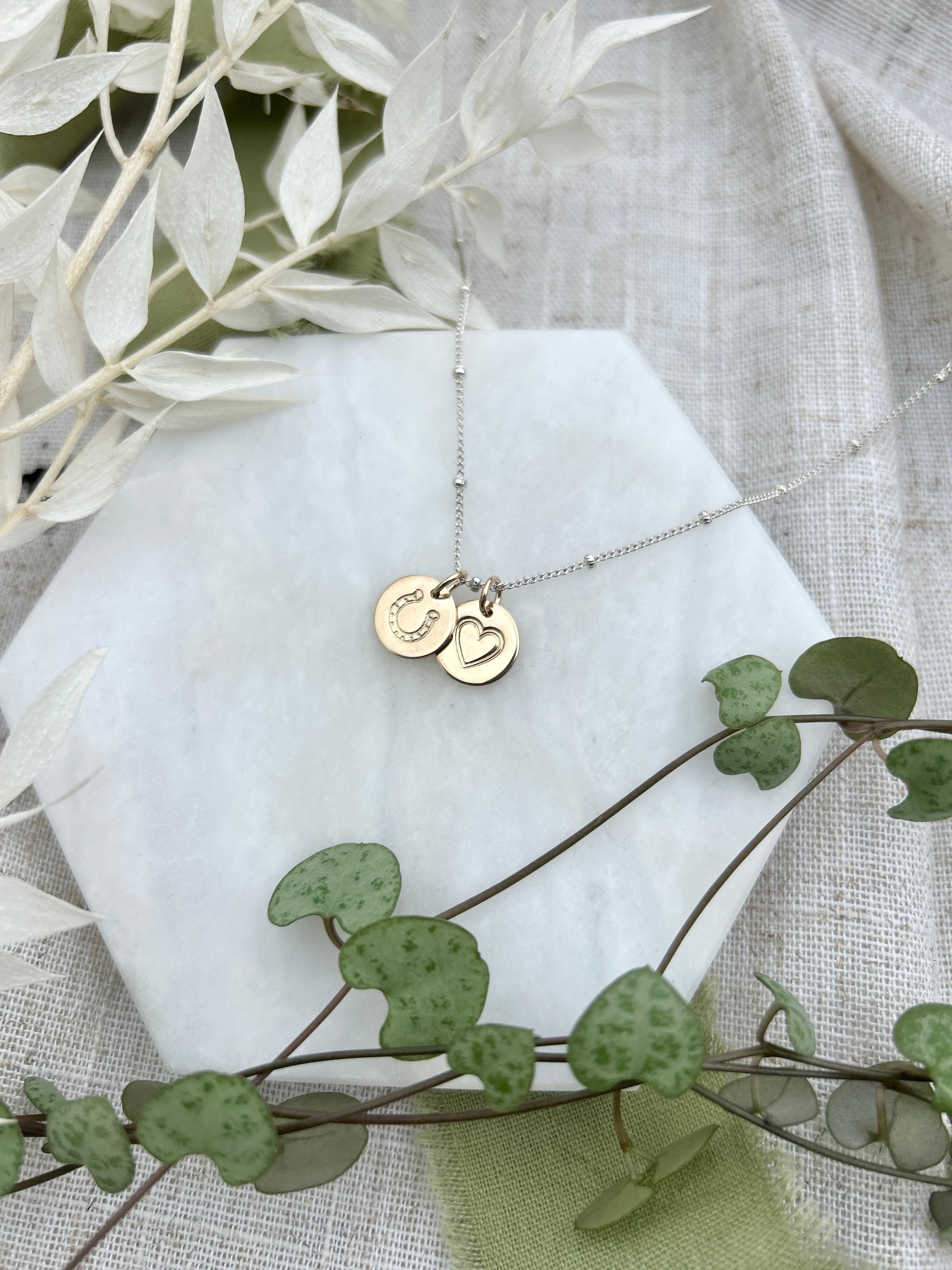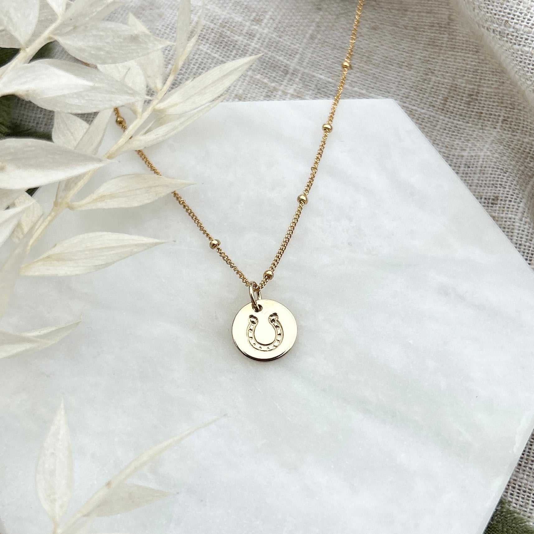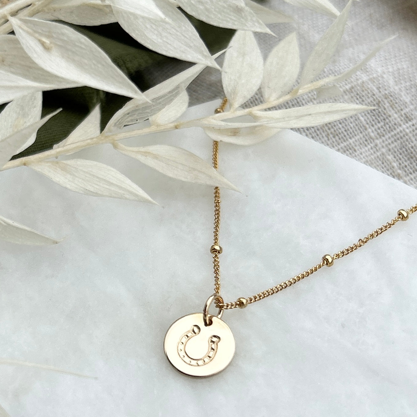 This beautiful horse shoe necklace isperfectly suited for all our countryside lovers who have a passion for horses. Available in sterling silver, gold-filled or our mix metal which comes on our most popular sterling silver satellite chain and gold filled pendent.