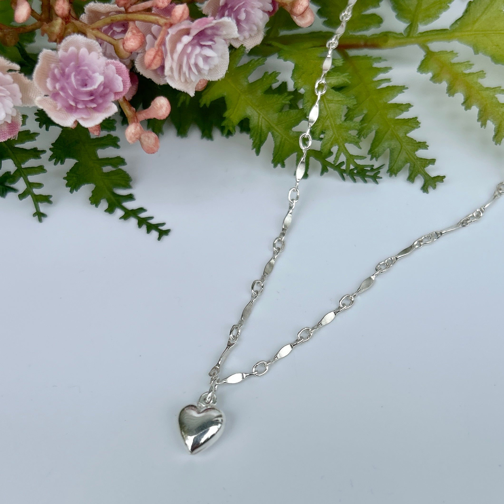 Made with high quality sterling silver material, this necklace is available in a delicate heart chain or bar chain and comes with your choice of charm. Perfect for any special occasion, or as an everyday accessory.