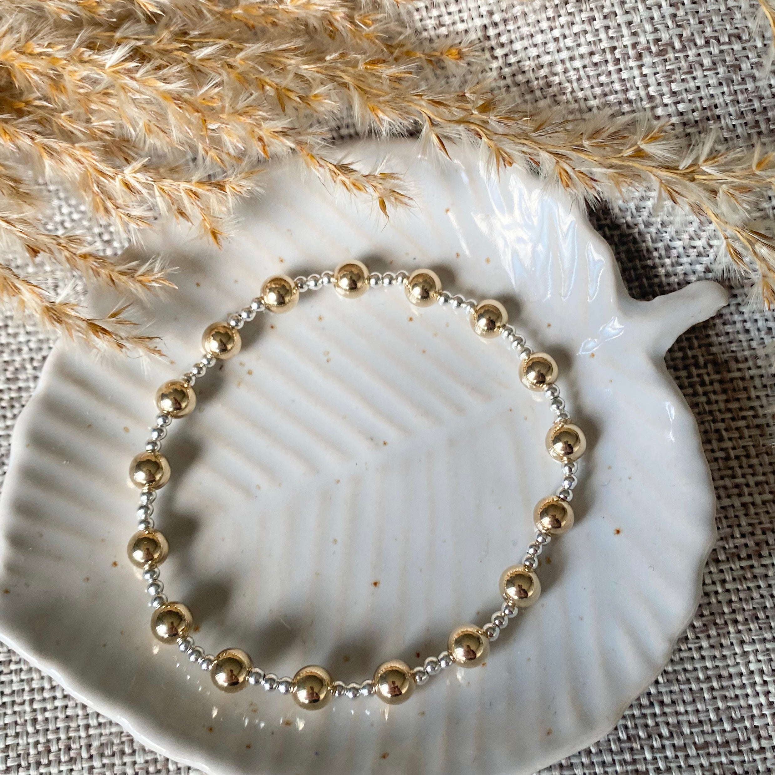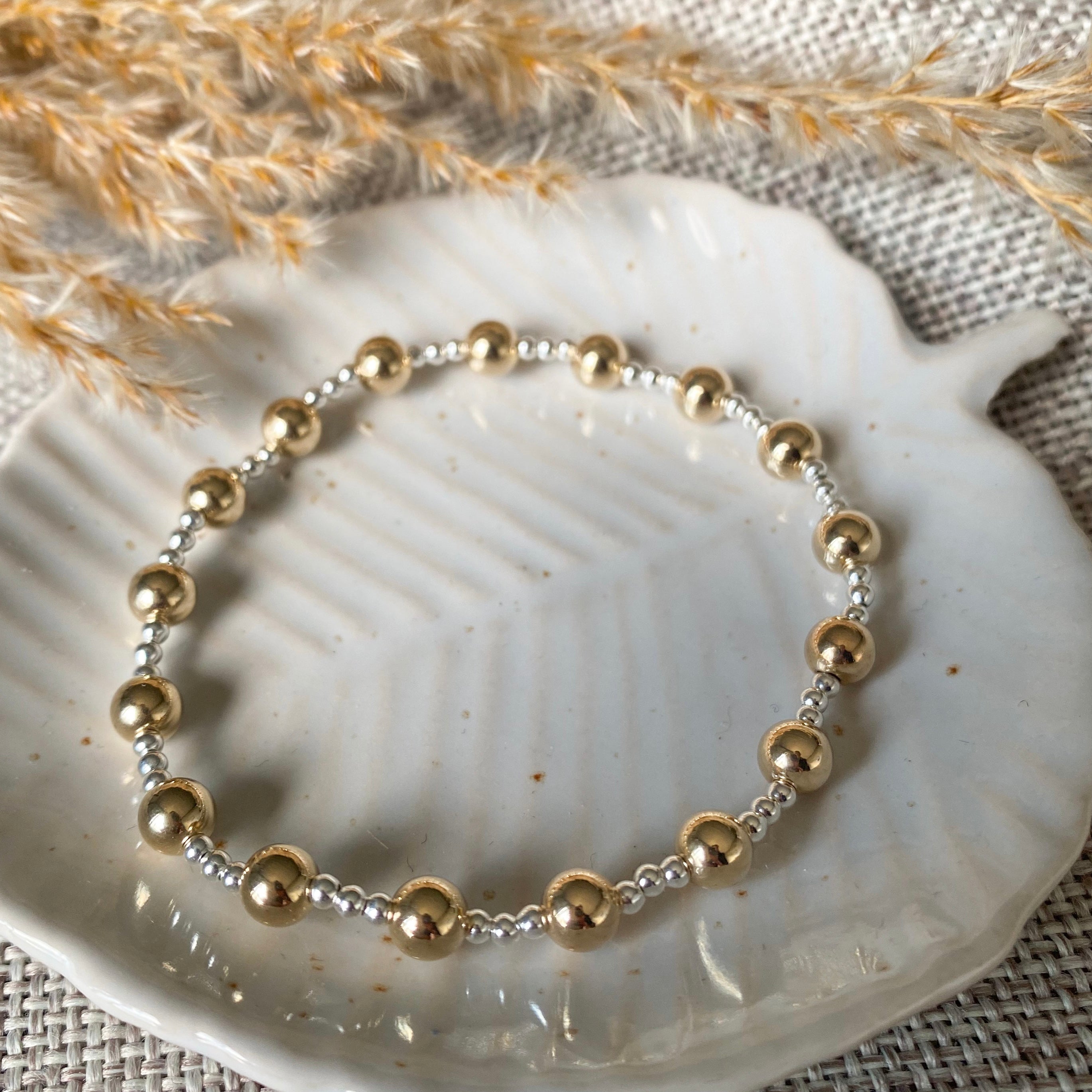 This stunning stackable Naomi bracelet is made with 5mm & 2mm gold-filled or sterling silver beads and was designed for a good friend of mine back in February 2021 and was one of the first metal bracelets I ever made along side the Laura Bracelet.