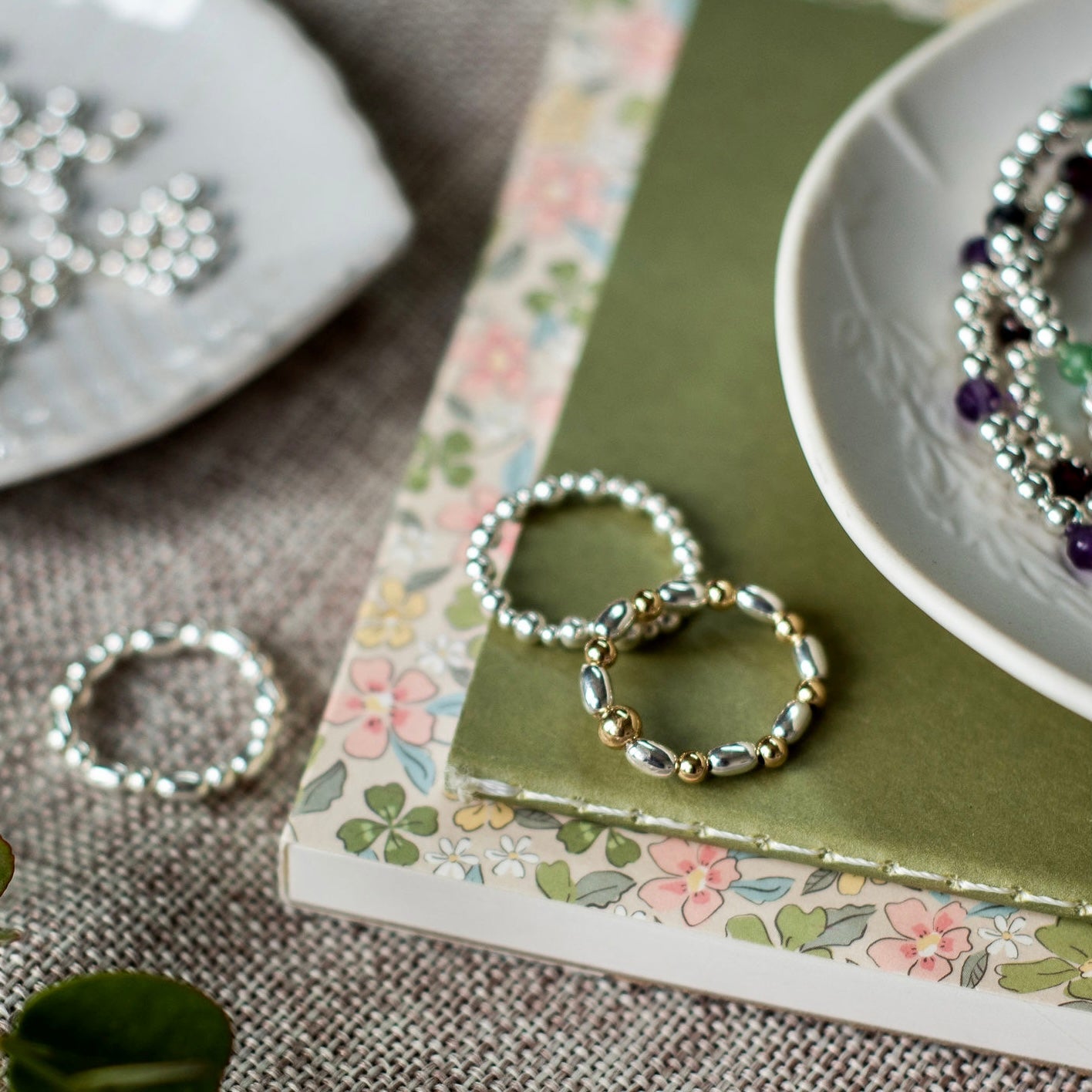 Made with 4mm & 2mm sterling silver or gold filled beads and beautiful worn as a stack or matched with our other Rebecca May rings.