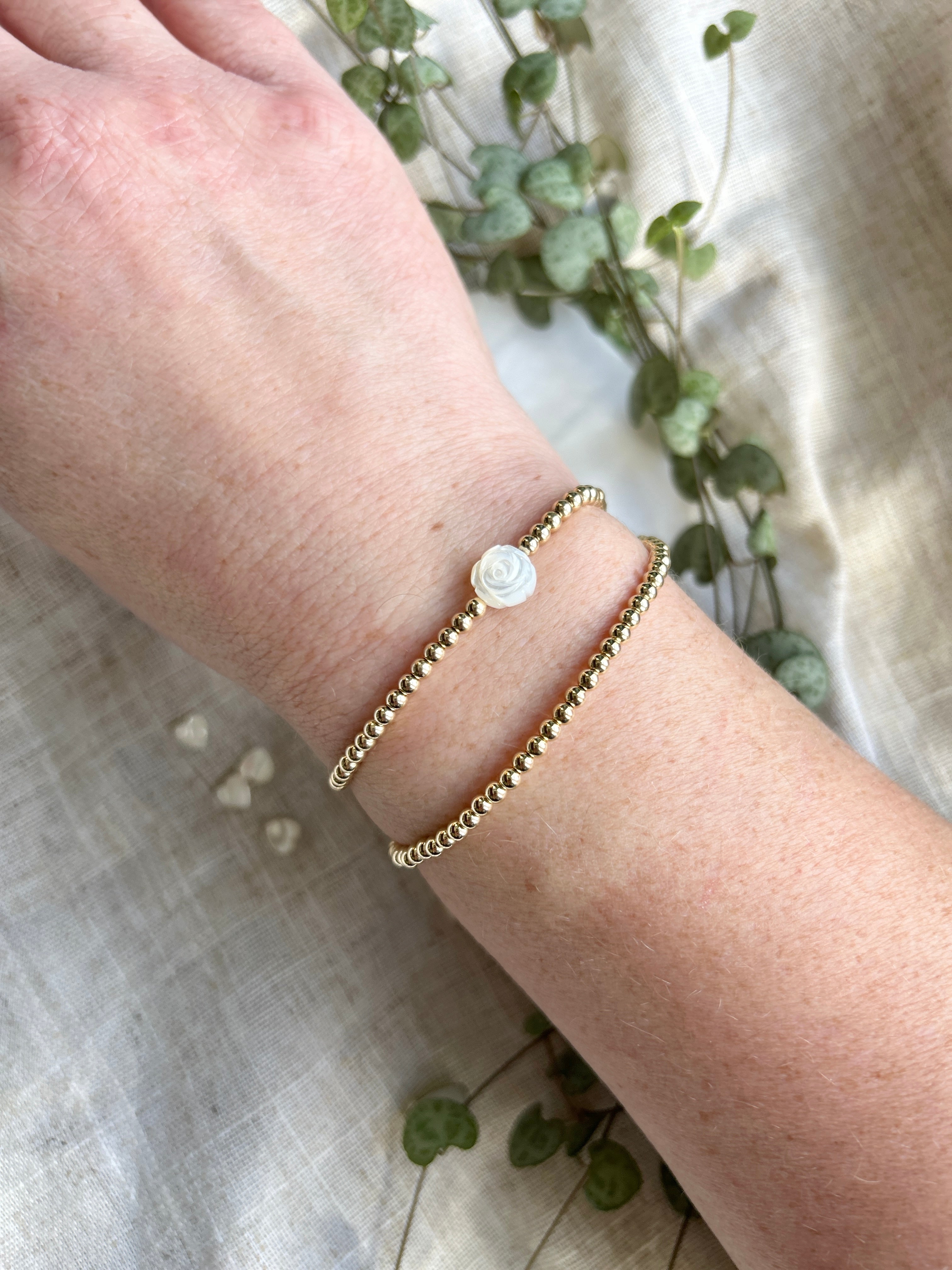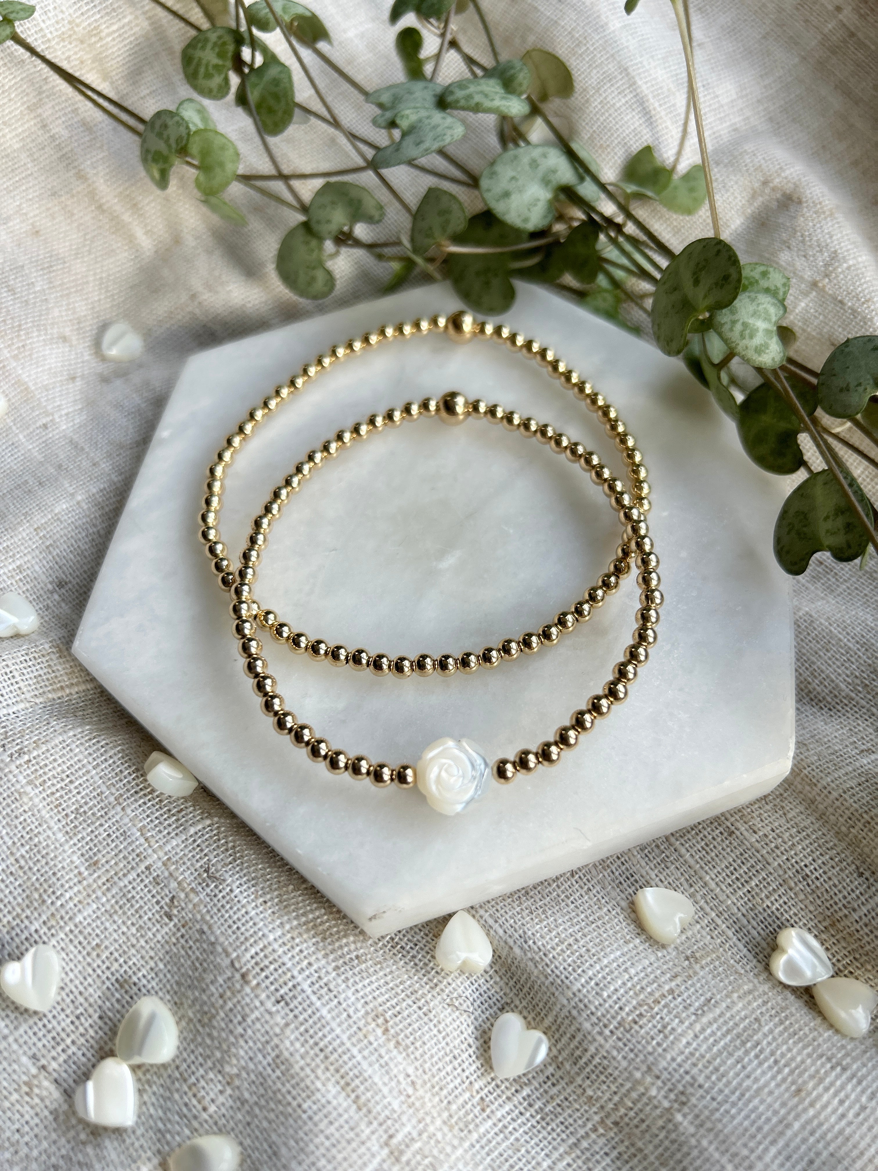 Look no further than our Pearl Rose Bracelet Stack Gift Set! This bundle includes our beautiful Mother Of Pearl Rose bracelet and our popular 3mm Jane bracelet, making for a perfect pairing. And with our 10% discounted price, you can give a thoughtful and stylish gift this Valentines Day. Limited time only.
