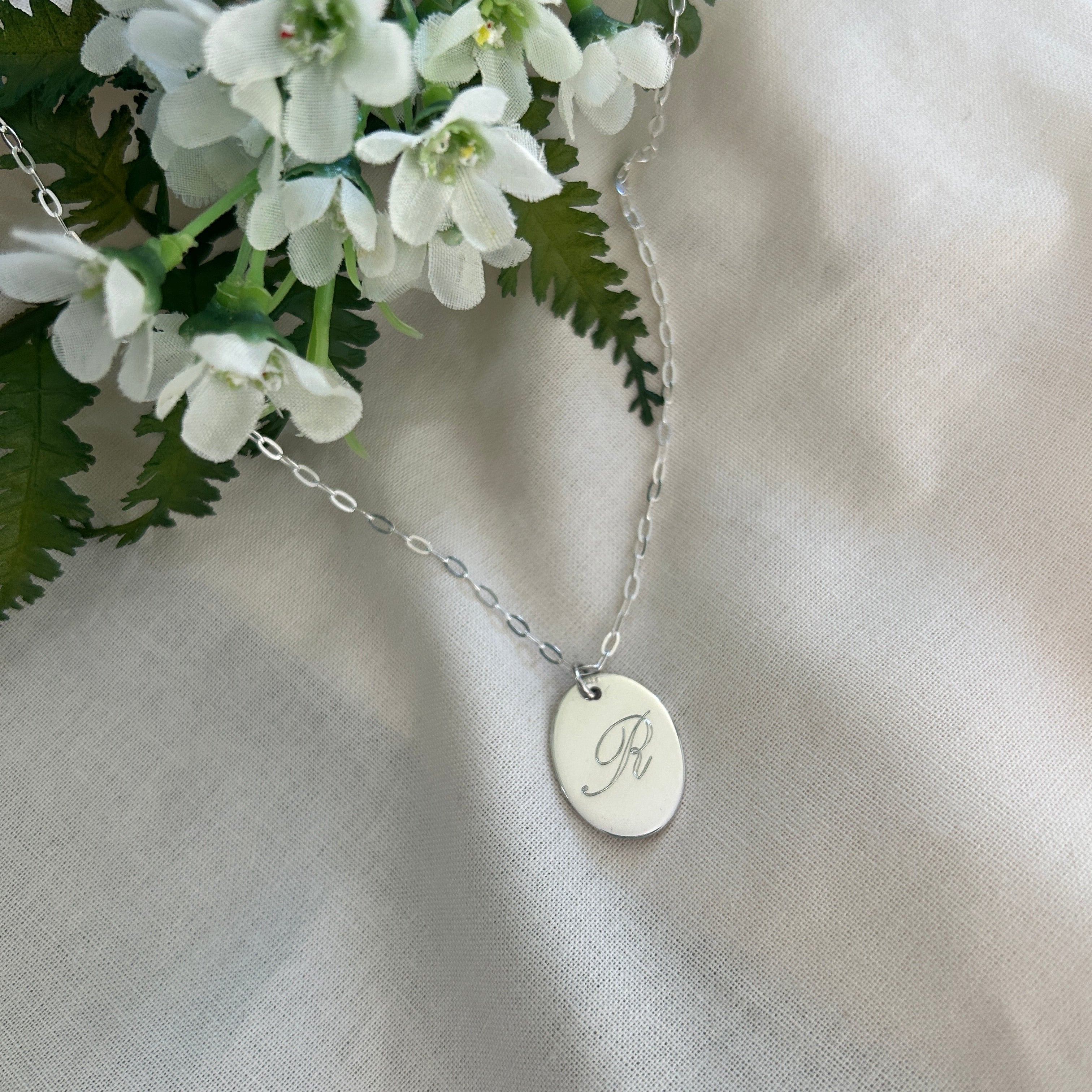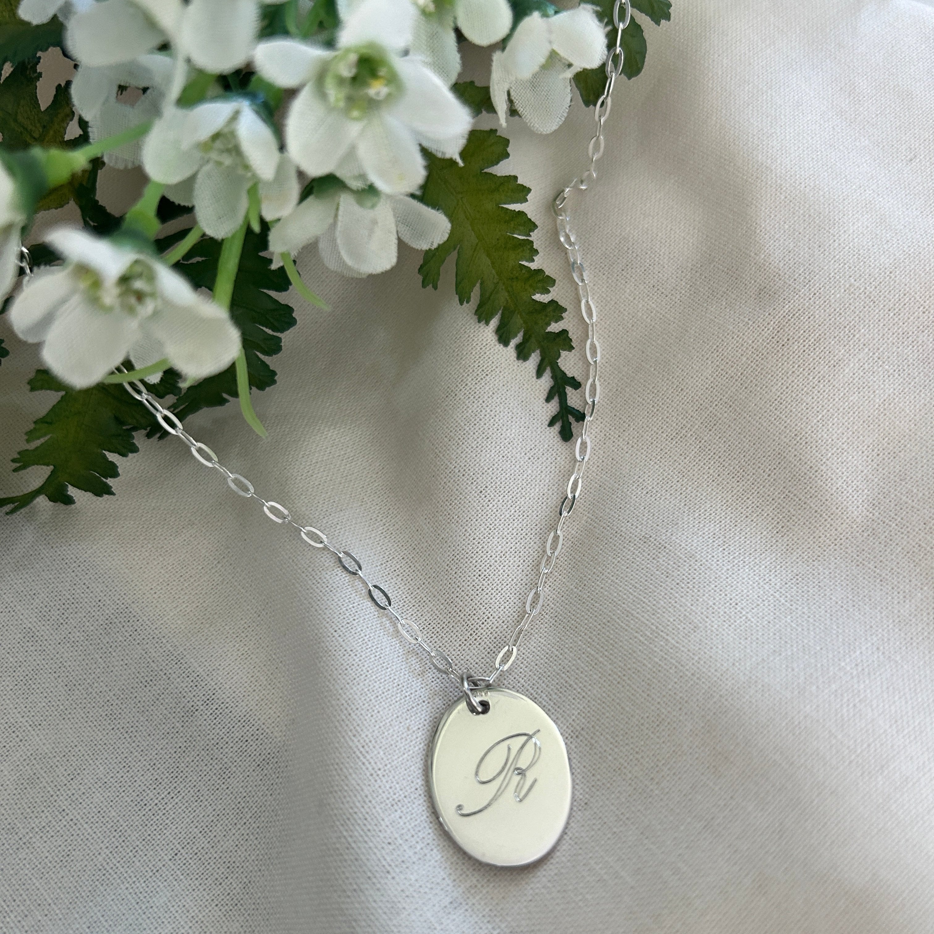 Our Classic oval initial pendant is crafted in sterling silver and personalised with the initial of your choice.