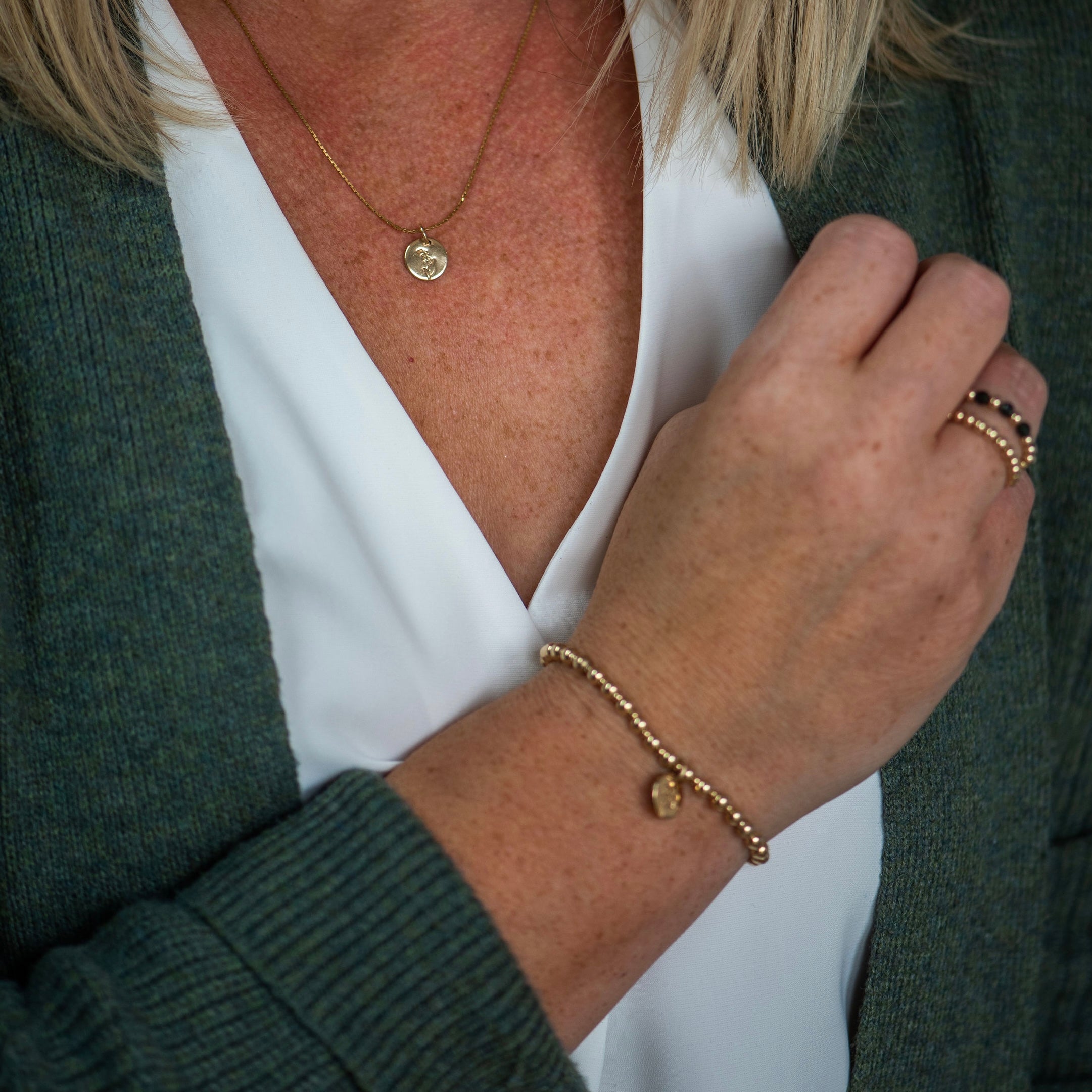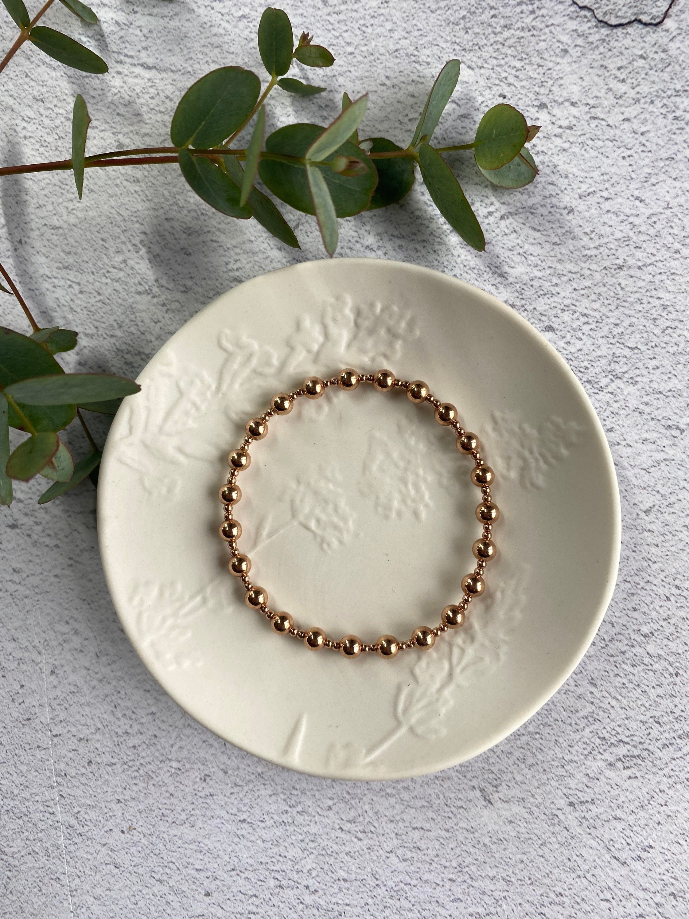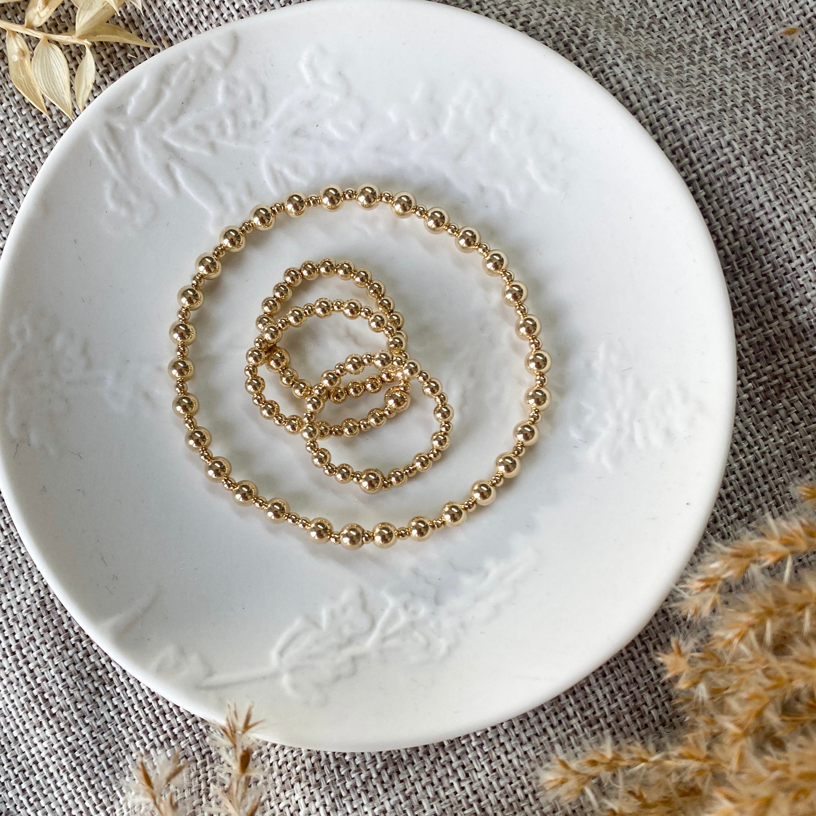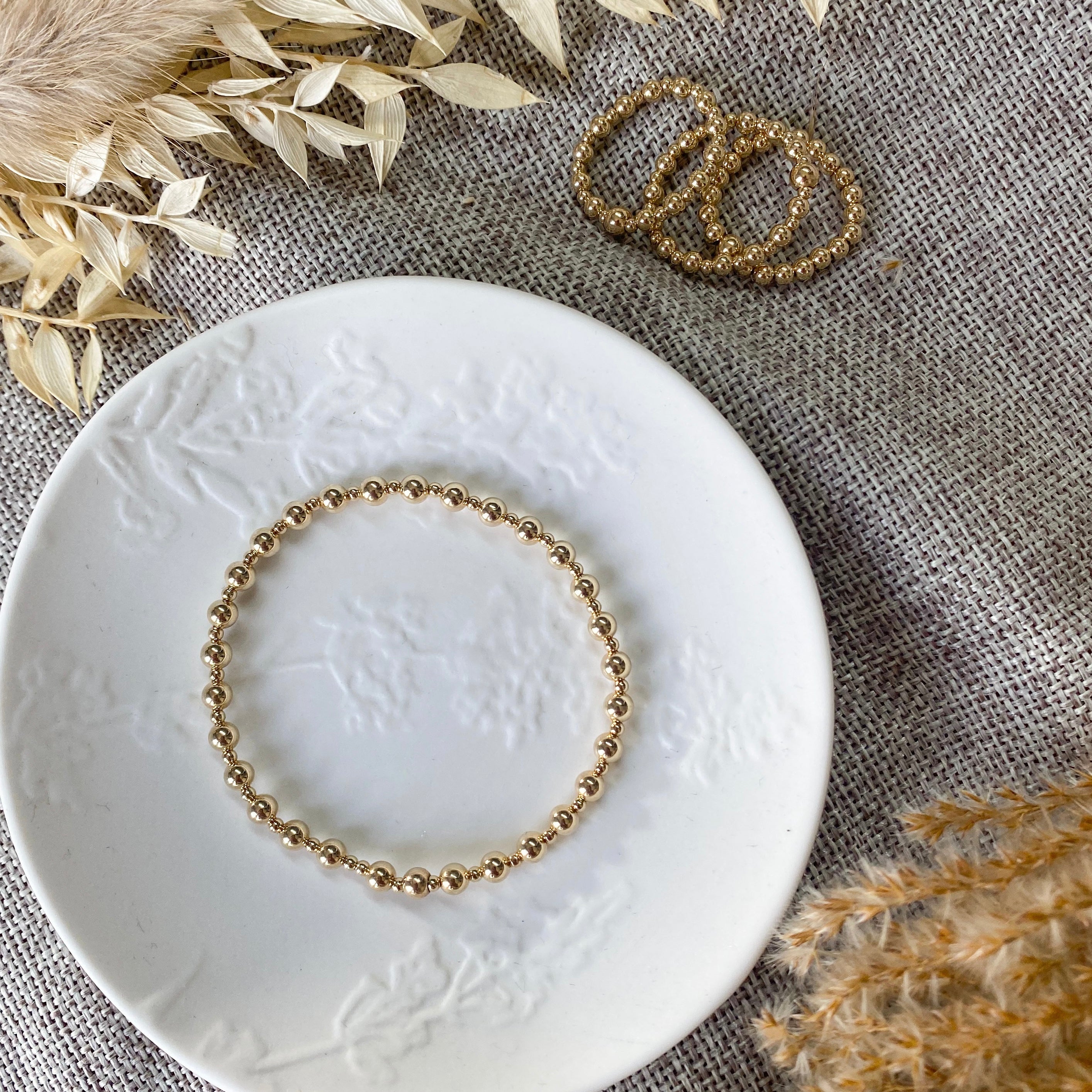 This beautiful stackable Laura bracelet is made with 4mm & 2mm gold-filled or sterling silver beads and was designed for my little sisters birthday gift back in February 2021 and was one of the first metal bracelets I ever made along side the Naomi Bracelet.