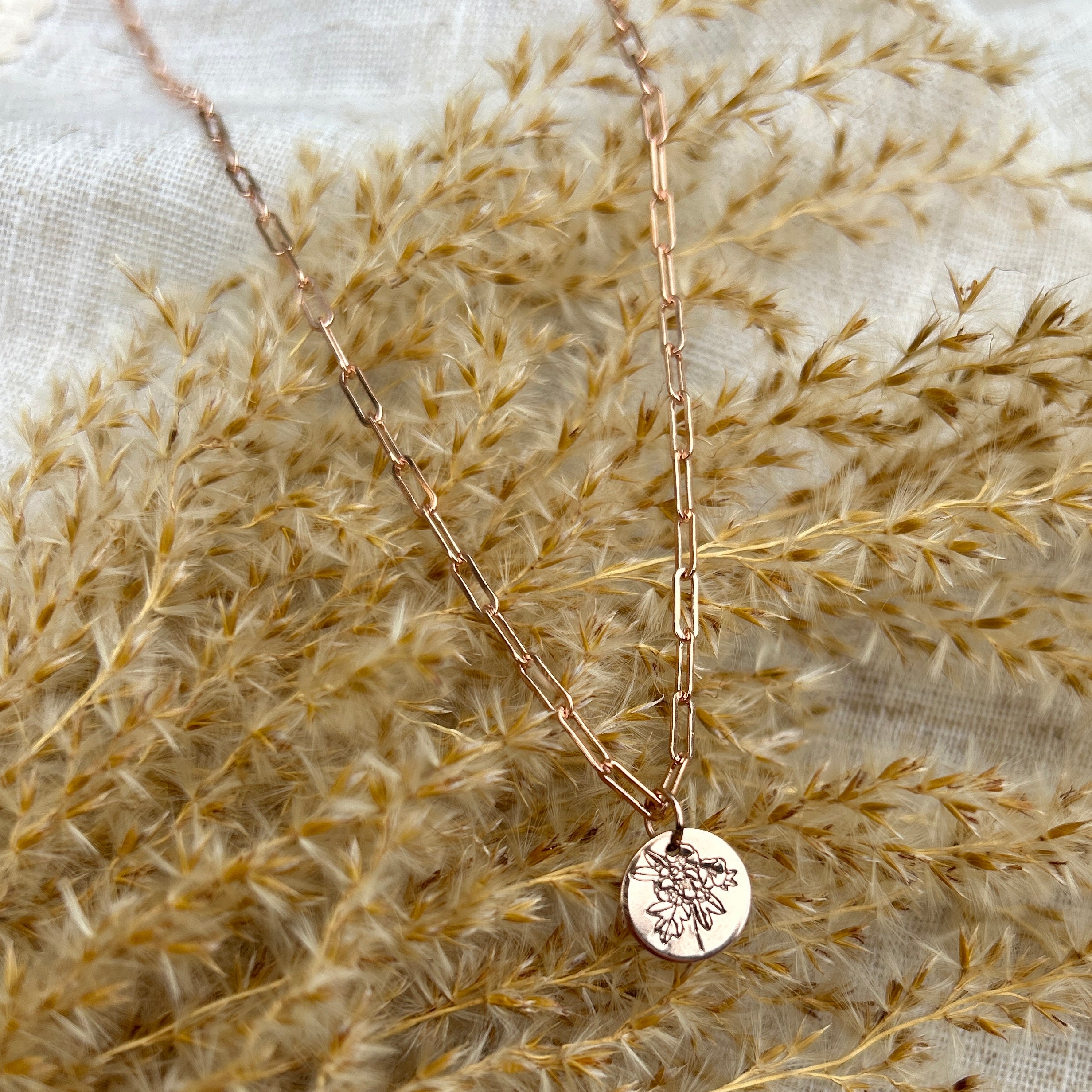 Hand stamped with love and care, this blossom necklace features a delicate hand drawn floral design, symbolising your unique story. Customise with up to six blooms creating a family bouquet that represents their special place in your life. Whether it's a heartfelt gift or a treat for yourself, it's a keepsake to cherish forever.