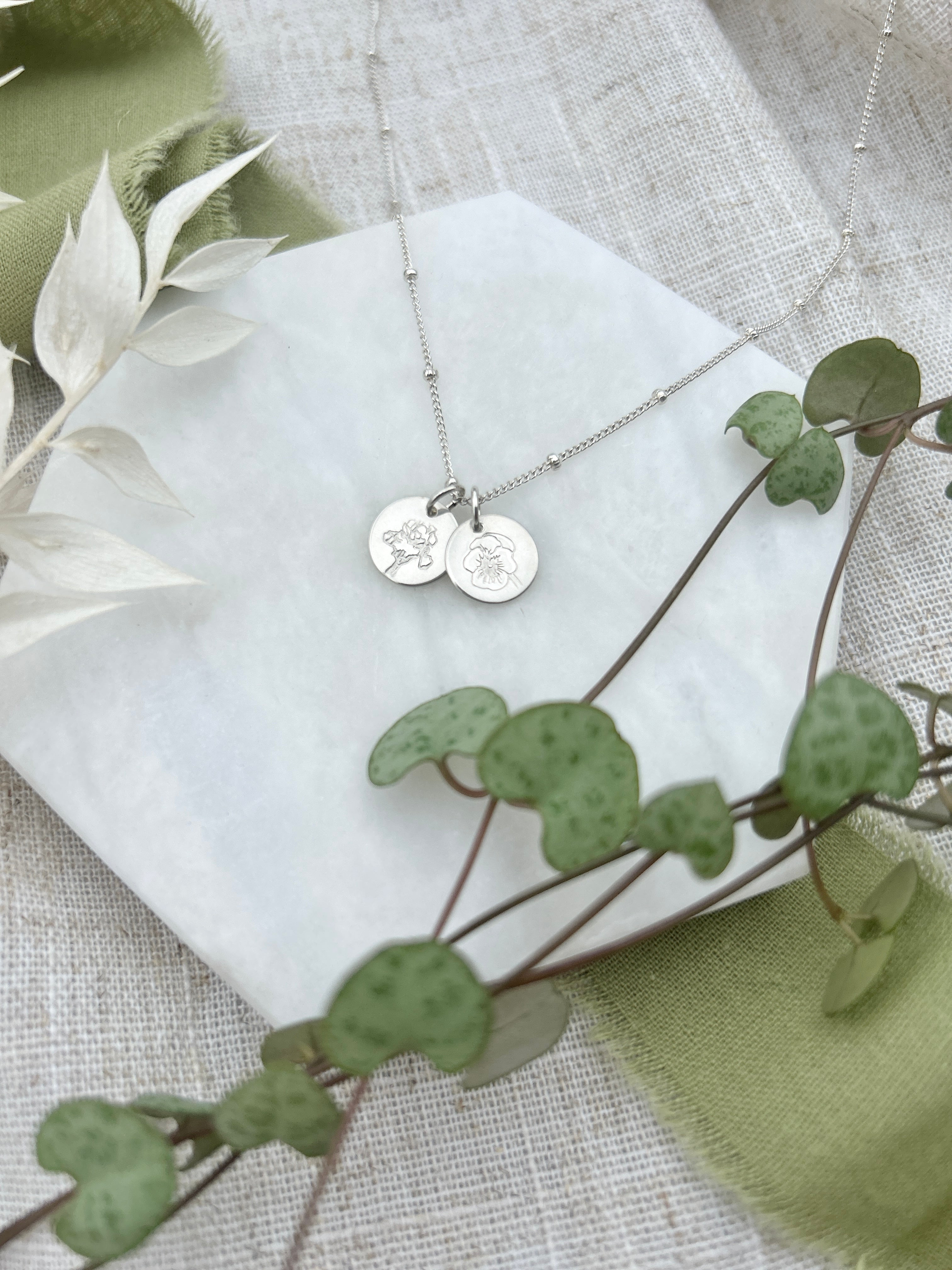 Customise your necklace with your birth flower or a flower that holds special meaning. Add engraving on the reverse or include extra pendants to represent loved ones, creating a unique keepsake.