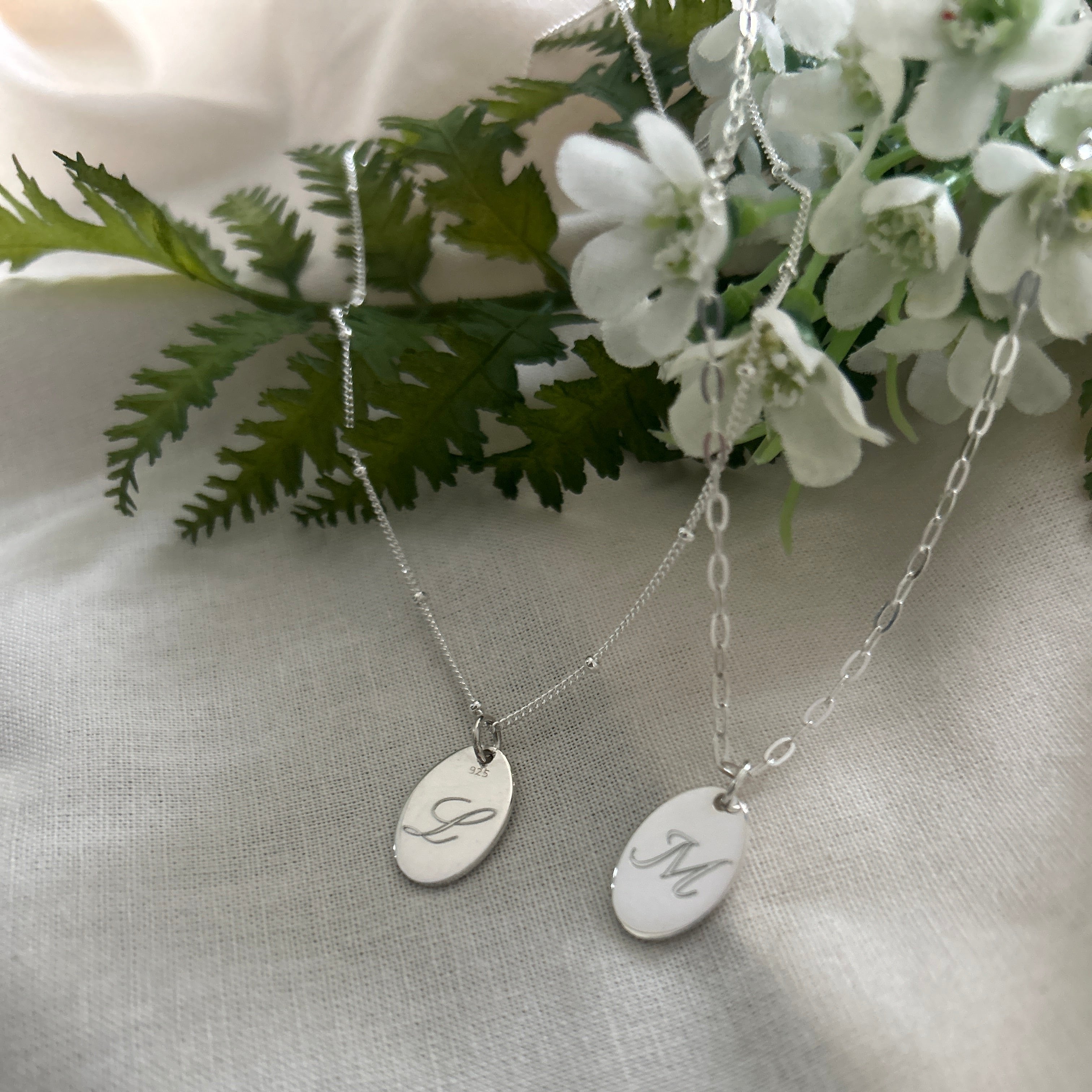 Our Petite oval initial pendant is a charming keepsake, crafted in sterling silver and personalised with the initial of your choice.