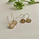 Hand-stamped with delicate floral designs, these hoop earrings are available in sterling silver or gold-filled, making them a meaningful gift or a special keepsake. Choose matching flowers or request a different flower on each earring by leaving a note in the personalisation box.
